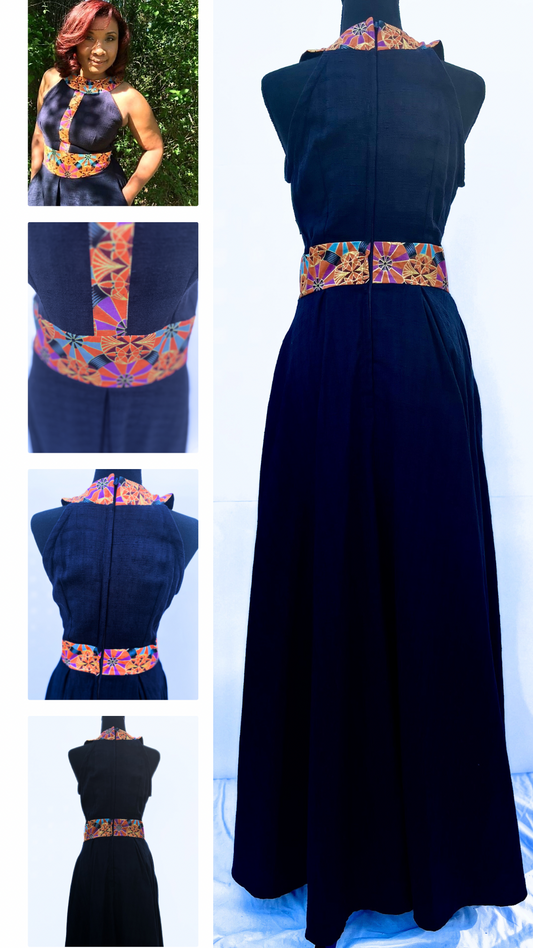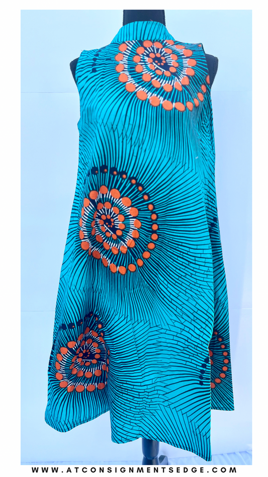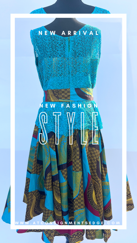 Turquoise Multi Color Dress with head wrap and wrap belt