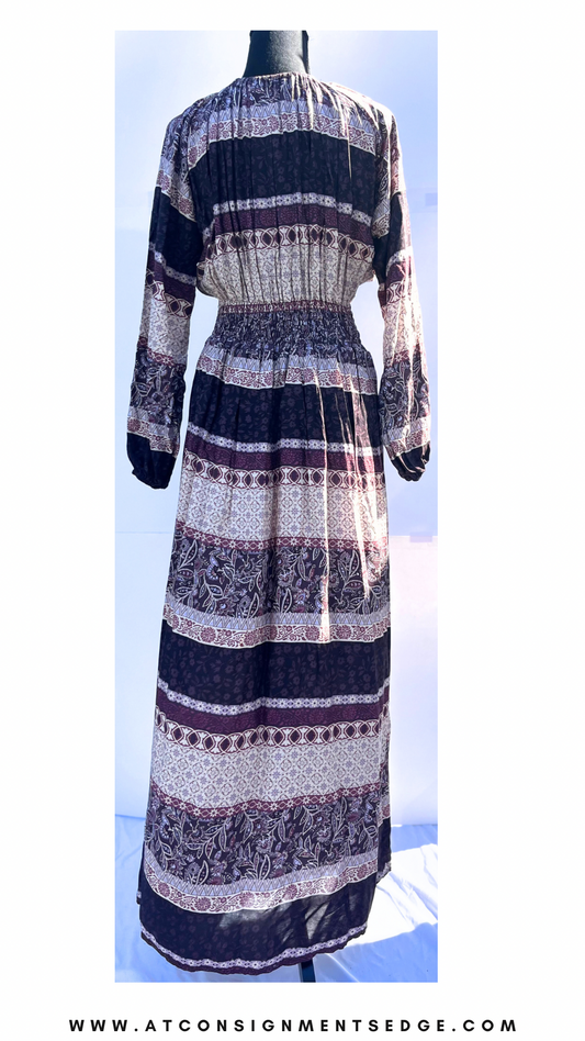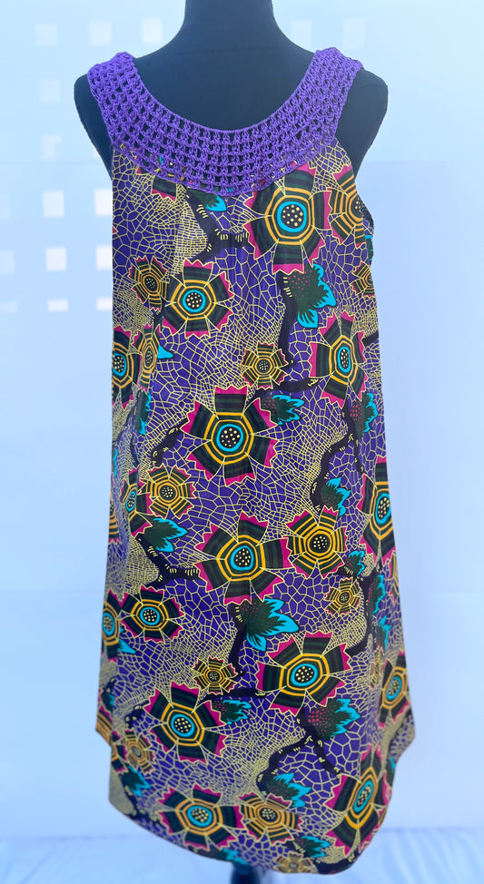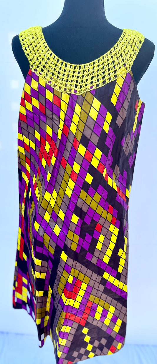 Yellow, Purple, Red, Brown Hues Multi Colored Dress